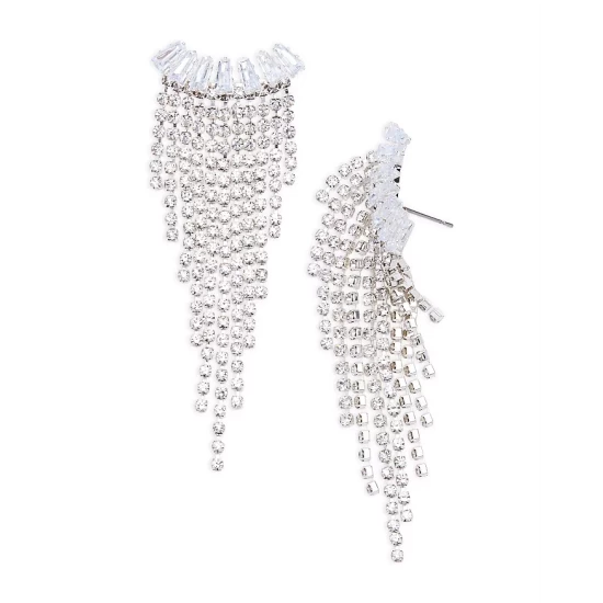 Brand new ๐ AQUA Cubic Zirconia Fringe Drop Earrings In Silver Tone Plated Metal – 100% Exclusive ๐