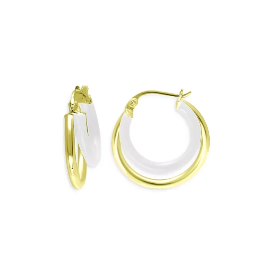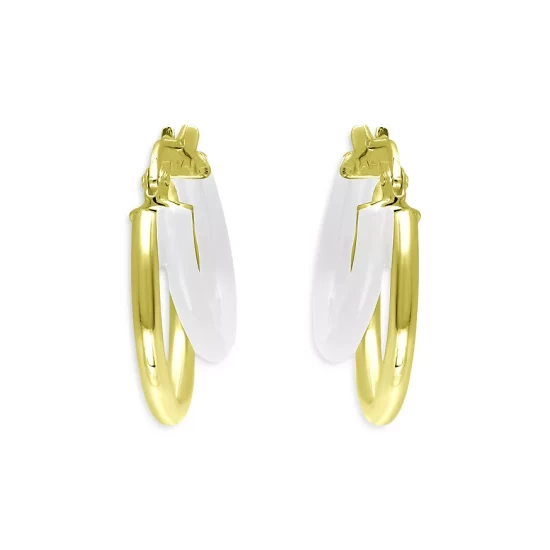 Budget 🔔 AQUA Double Hoop Earrings In 18K Gold Plated Sterling Silver – 100% Exclusive Gold/white 😍
