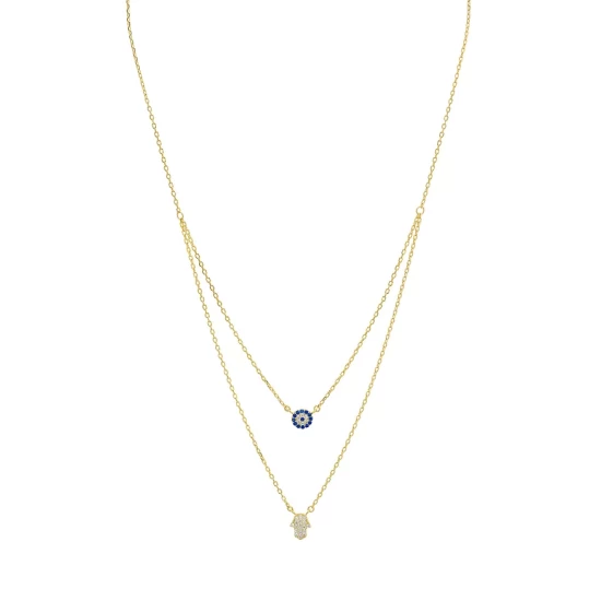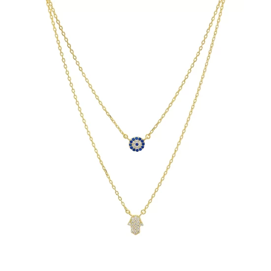 Best deal ๐ AQUA Double Strand Hamsa Pendant Necklace In 14K Gold-Plated Sterling Silver Or Sterling Silver, 14″-16″ – 100% Exclusive โ