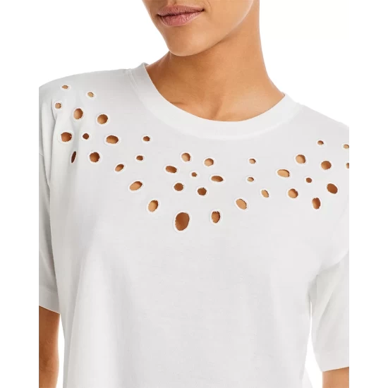 - Shorts: pull-on style with self-tie drawstring, eyelet details