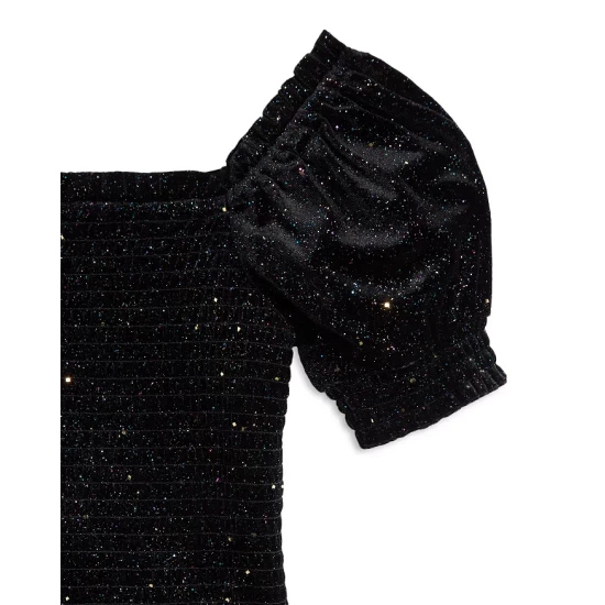 Outlet ⭐ AQUA 🤩 Girls’ Sparkle Velvet Smocked Top – Big Kid Black ✨