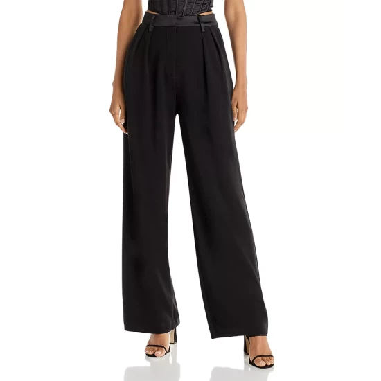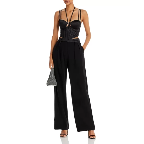 A bustier-style halter top is paired with chic wide-leg trousers in this compliment-worthy look from AQUA x Maeve Reilly.