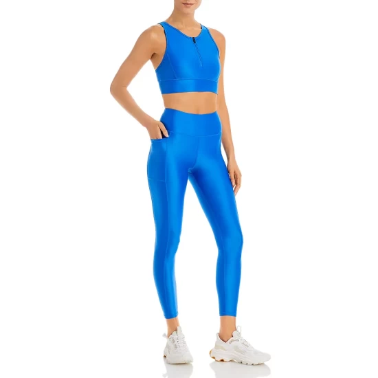 Gear up for a successful workout session with high shine zippered sports bra and matching leggings from AQUA Athletic; layer over with a zipper hoodie for sporty finish.