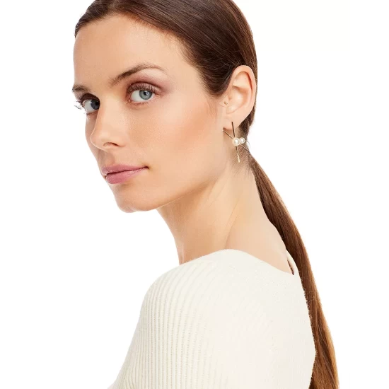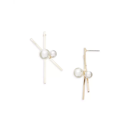 Buy ✨ AQUA Imitation Pearl Crossover Bar Drop Earrings In Gold Tone – 100% Exclusive Cream/gold ❤️