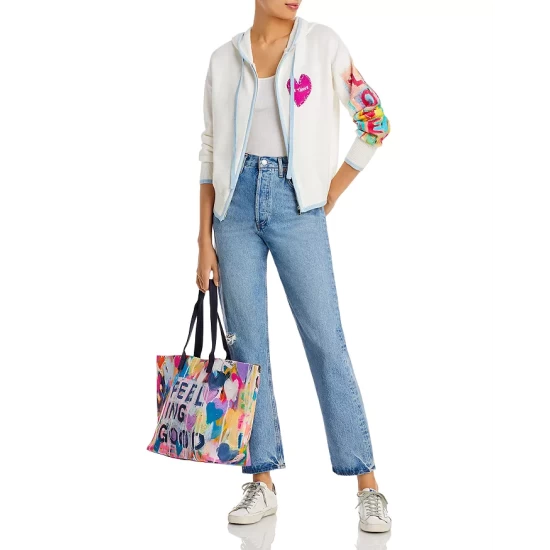 - Contrast “LOVE” graphic at left sleeve