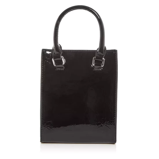 - Creased faux patent leather detailing