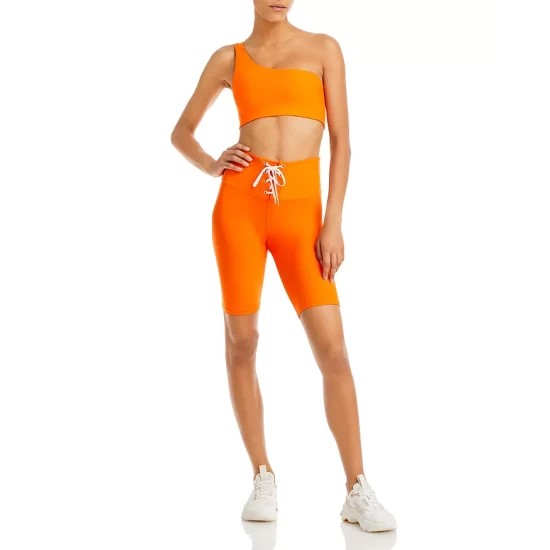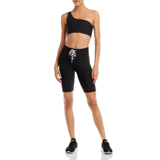 Be prepared for anything that comes your way with this set from AQUA. The one shoulder bra and lace up front leggings lends a chic sporty finish to your workout look.