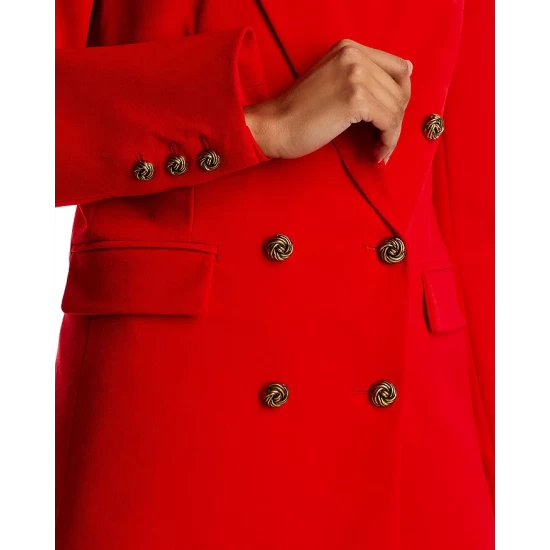 - Front double-breasted button closure