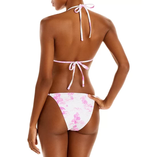 Tie together a chic vacay vibe with this timeless triangle bikini top and side-tie bikini bottom from AQUA Swim, radiating a detailed tropical print.