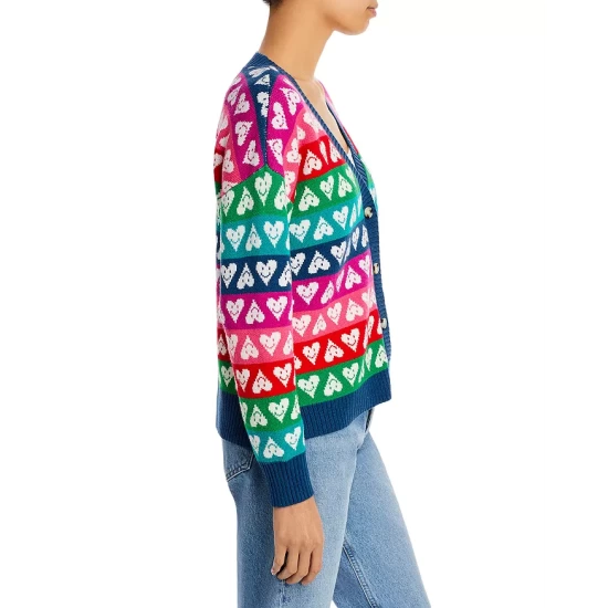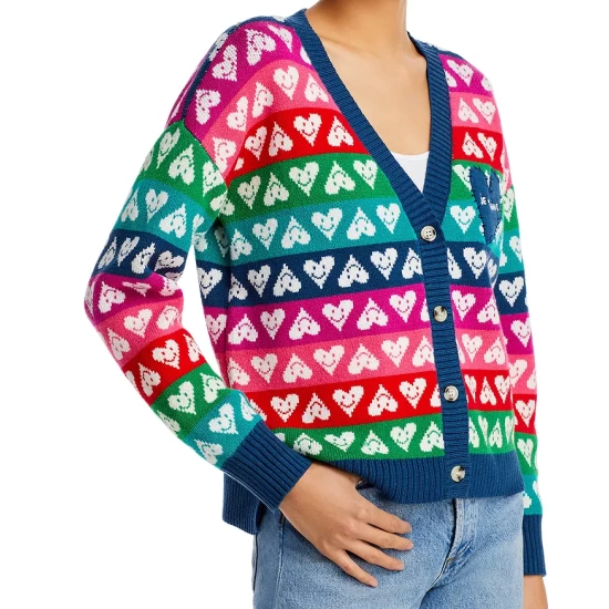 - Rainbow-striped knit with smiley heart intarsia
