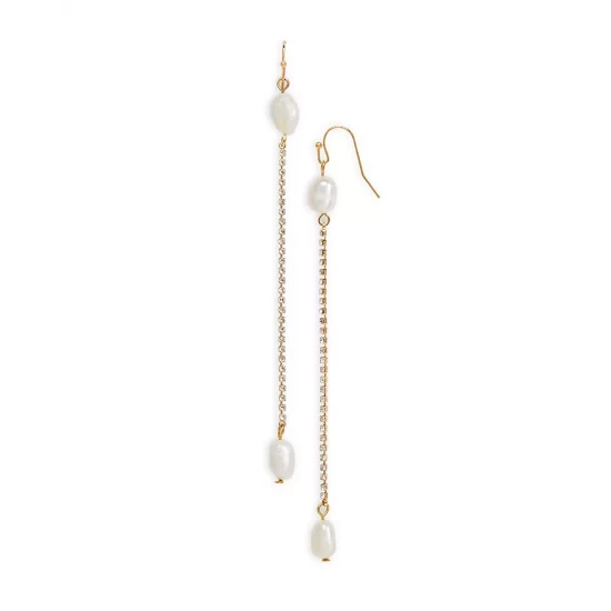 Brand new โ๏ธ AQUA Rhinestone & Imitation Pearl Linear Drop Earrings – 100% Exclusive Gold ๐