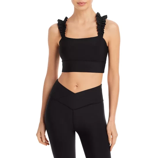 Let AQUA take you from yoga to lunch in this sweet workout look, pairing a cropped ruffle-strap bra with high-waist pull-on leggings.