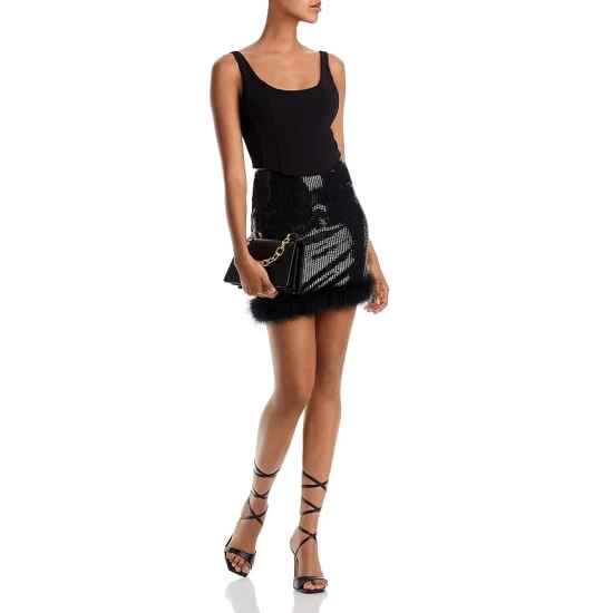 - Self: polyester/LUREXยฎ/spandex; trim: ostrich feathers; lining: polyester