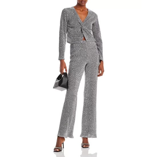 - Ribbed metallic fabric with allover sequin embellishment