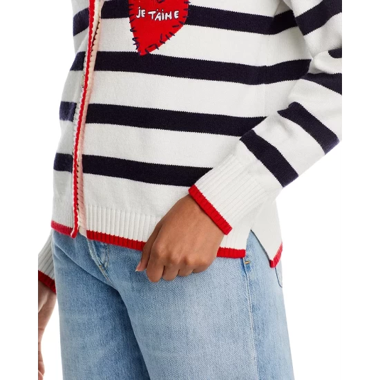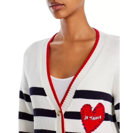 - Contrast embroidered “JE T’AIME” heart patch at left chest