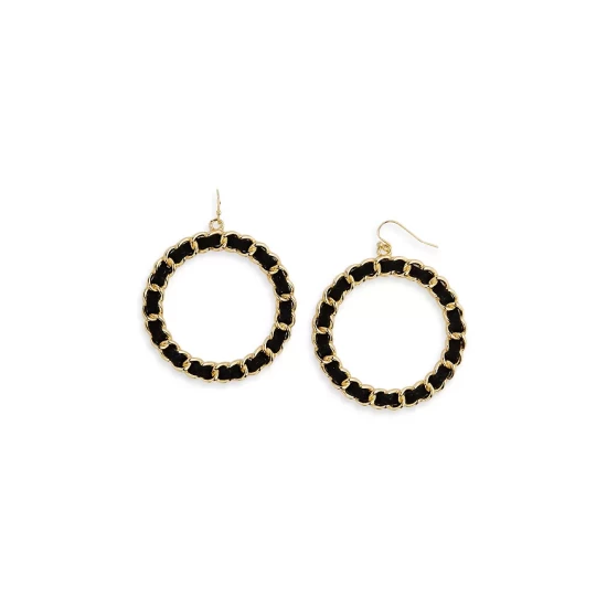 Hot Sale ๐ AQUA Suede Chain Drop Hoop Earrings – 100% Exclusive Black/gold ๐