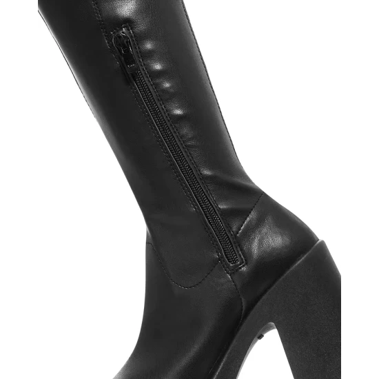 Best Pirce ๐งจ AQUA Women’s Billy Square Toe High Heel Platform ๐ Boots – 100% Exclusive Black โค๏ธ