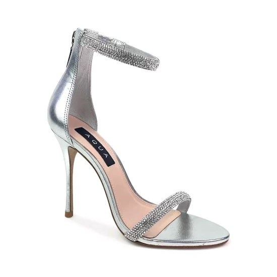 Best deal 🎁 AQUA X SCHUTZ Women’s Olivia Ankle Strap High Heel 😉 Sandals – 100% Exclusive Silver ⌛