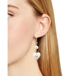 Discount 😍 AQUA Cultured Freshwater Pearl Heart Double Drop Earrings – 100% Exclusive White/gold 🎉