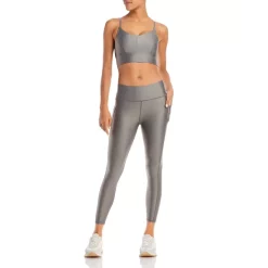 Wholesale 👍 AQUA Liquid Shine V Neck Sports Bra & High Rise 7/8 Leggings – 100% Exclusive Pewter 💯
